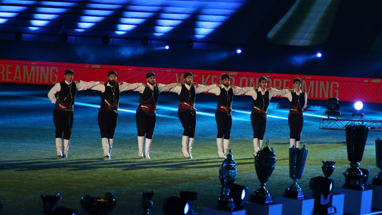 Από εκεί και πέρα στη γιορτή των «ερυθρόλευκων» υπήρχε σύνδεση με τα νησιά με χορούς όπως ο μπάλος και ο κρητικός πεντοζάλης, ενώ μεταξύ άλλων στη φιέστα της ομάδας τιμήθηκε και η μνήμη του Γεώργιου Καραϊσκάκη.