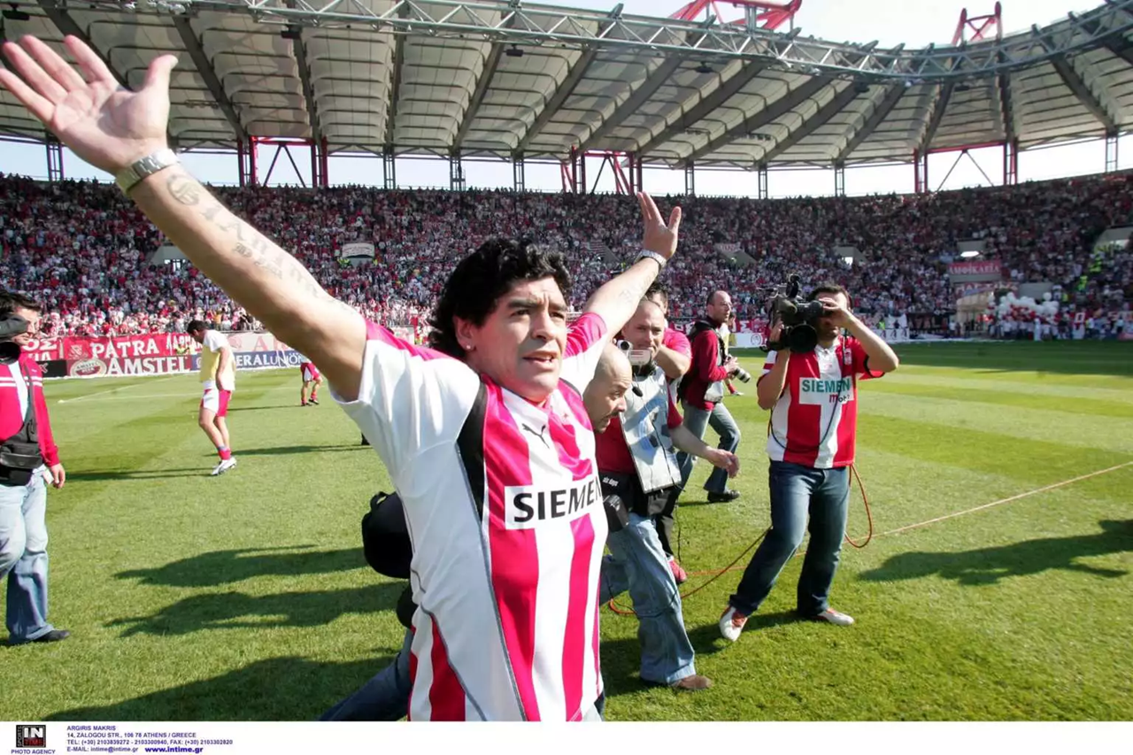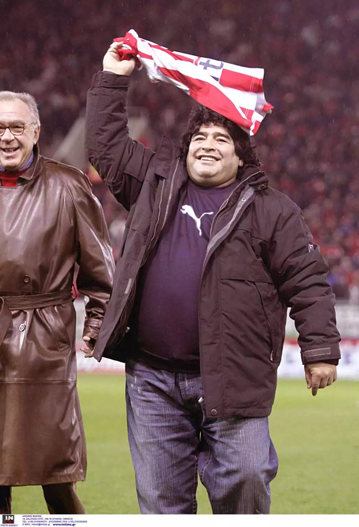 Αποκορύφωμα φυσικά η παρουσία του στο παιχνίδι με τον Ηρακλή. Ο Μαραντόνα βγήκε στο χορτάρι χέρι χέρι με τον Ριβάλντο και η εξέδρα πήρε… φωτιά. Από την άλλη ο Ντιέγκο έγινε μέλος του Ολυμπιακού και πήρε την φανέλα με το Νο10.
