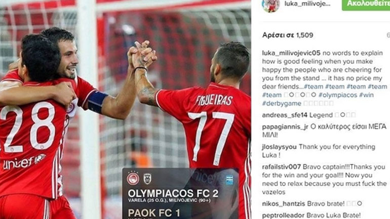 Ο Λούκα Μιλιβόγεβιτς έβαλε φαρδιά πλατιά την υπογραφή του στη σημαντική νίκη (2-1) του Ολυμπιακού επί του ΠΑΟΚ, με τον ίδιο να εκφράζει την ικανοποίησή του για τη χαρά που έδωσαν αυτός και οι συμπαίκτες του στον κόσμο της ομάδας.