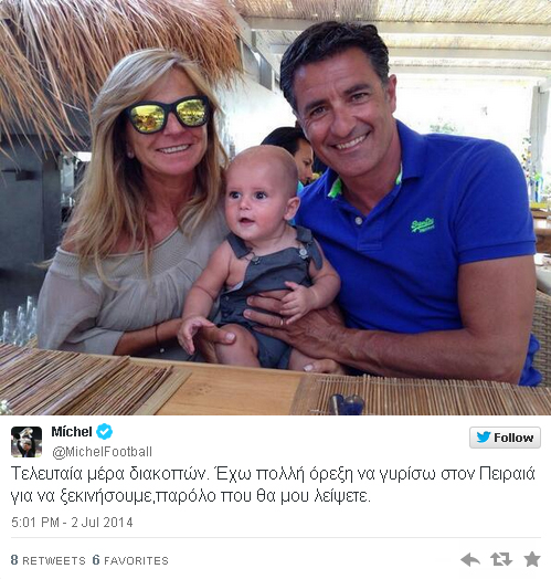 Ο τεχνικός των Πειραιωτών πάντως δήλωσε, μέσω twitter, γεμάτος όρεξη για δουλειά, αν και παραδέχτηκε ότι θα του λείψουν τα αγαπημένα του πρόσωπα.