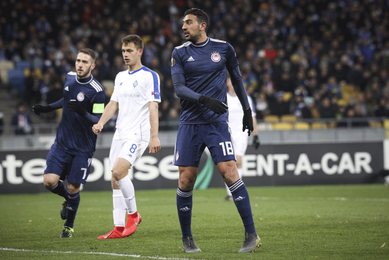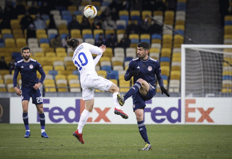 Την ήττα με 1-0 από την Ντιναμό Κιέβου γνώρισε ο Ολυμπιακός στο πλαίσιο της φάσης των «32» του Europa League και σε συνδυασμό με το ισόπαλο 2-2 του πρώτου αγώνα έμεινε εκτός συνέχειας της διοργάνωσης. Το γκολ που έκρινε το ματς σημείωσε στο 32’ ο Σολ.