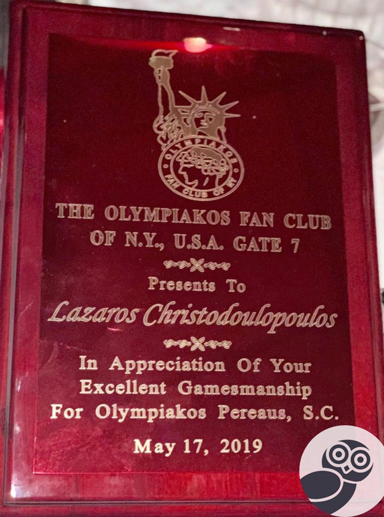 Ο διεθνής ποδοσφαιριστής του Ολυμπιακού, Λάζαρος Χριστοδουλόπουλος, ήταν το τιμώμενο πρόσωπο στην ετήσια χοροεσπερίδα του Fan Club Olympiakos New York, η οποία πραγματοποιήθηκε στο εστιατόριο Λατέρνα, στο Μπεϊσάιντ της Νέας Υόρκης.