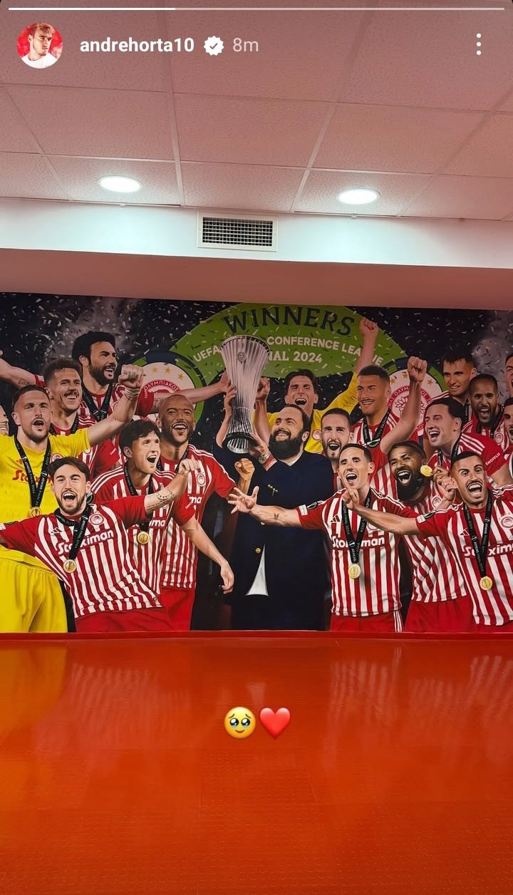 Την παραμονή του αγώνα των δύο ομάδων ο Αντρέ Όρτα ανέβασε ένα story από το φαληρικό γήπεδο με την τοιχογραφία για το ερυθρόλευκο έπος στην Opap Arena, βάζοντας μάλιστα στο σχετικό ποστ και ένα emoji με συγκινημένο πρόσωπο.