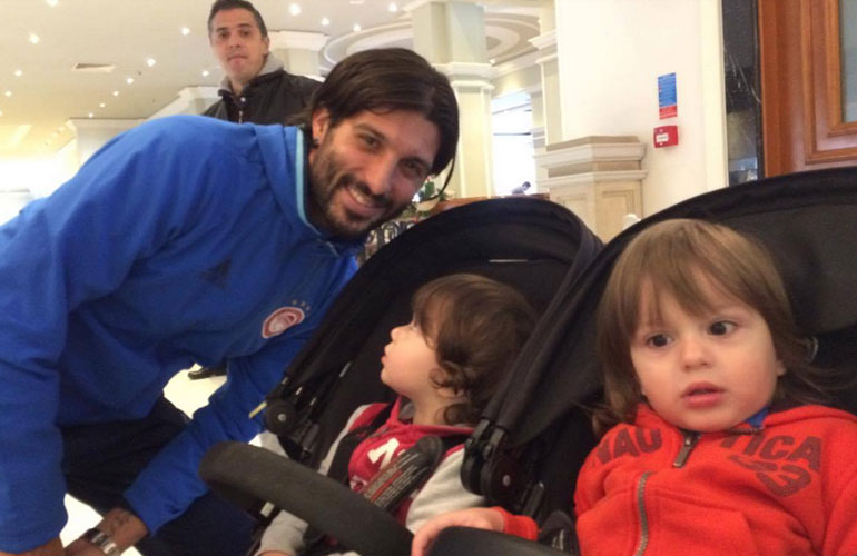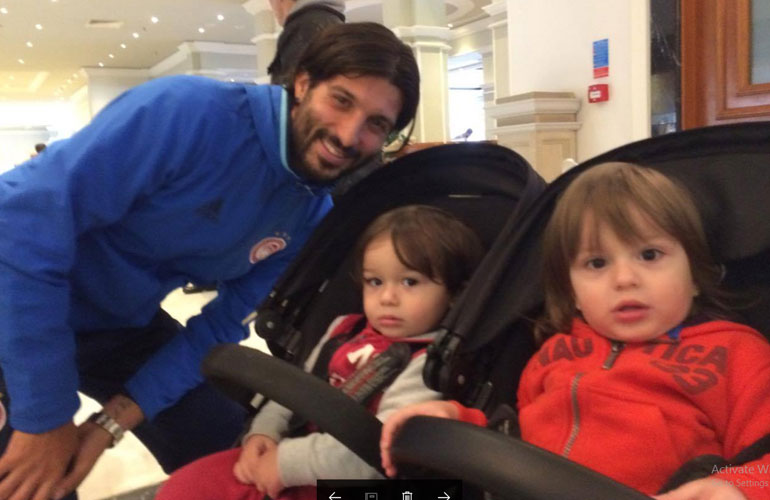 Αμέσως ο Αργεντινός άρχισε να παίζει με τα δύο αδελφάκια και μετά χαράς δέχτηκε να φωτογραφηθεί μαζί τους, όπως και με τον Μαθιό, που ήταν ντυμένος στα ερυθρόλευκα.