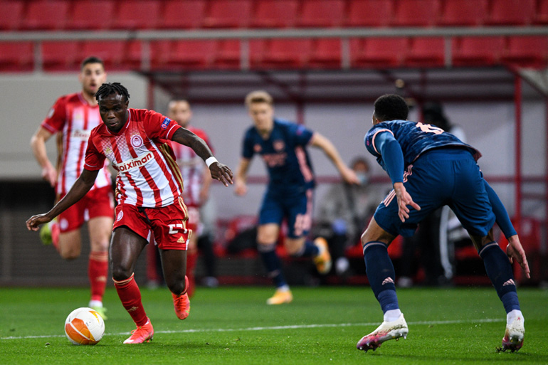 Γκολ: 34′ Όντεργκαρντ (Άρσεναλ), 58′ Ελ Αραμπί (Ολυμπιακός), 79′ Γκάμπριελ (Άρσεναλ), 85′ Ελνένι (Άρσεναλ)