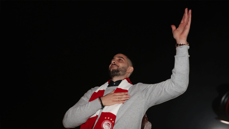 «Κώστα έλα, μας έχει πιάσει τρέλα», ήταν ένα από τα συνθήματα που φώναζαν οι οπαδοί των Πειραιωτών για τον Έλληνα αμυντικό, ο οποίος από τη μεριά του έδειξε να απολαμβάνει το «πάρτι» που είχε στηθεί προς τιμήν του, φορώντας και κασκόλ των «ερυθρόλευκων».