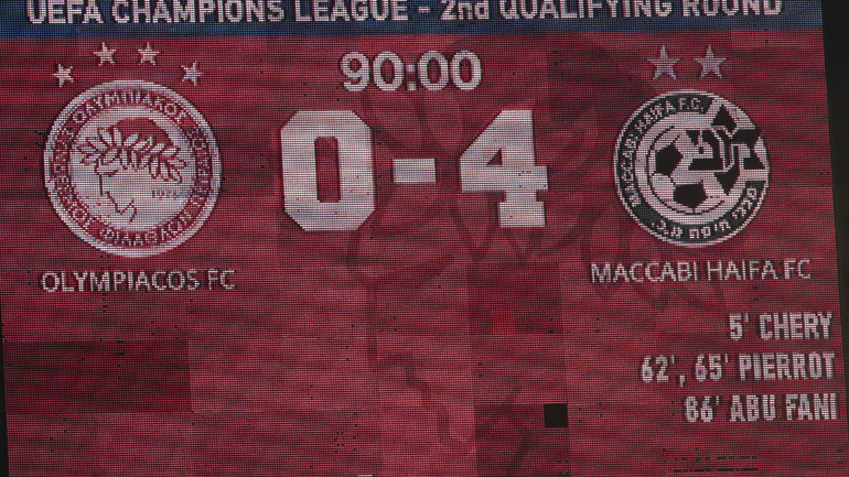 Η συντριβή με 4-0 από τη Μακάμπι Χάιφα ισοφάρισε τη βαρύτερη εντός έδρας ήττα του Ολυμπιακού στην Ευρώπη, την οποία είχε γνωρίσει η ελληνική ομάδα από το Αμβούργο το 1983, στον 2ο γύρο του Κυπέλλου Πρωταθλητριών.