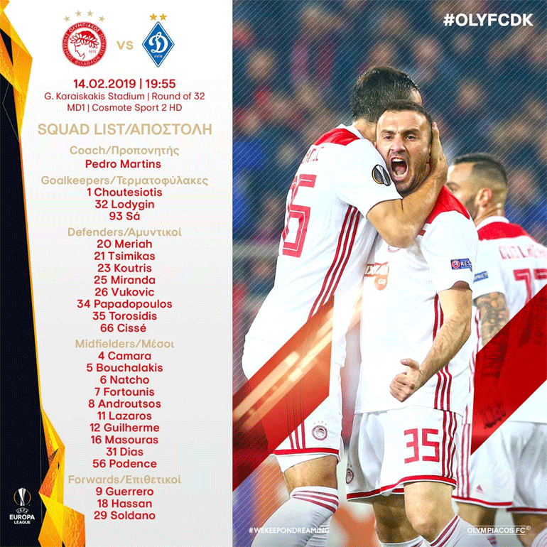 Ο Πέδρο Μαρτίνς συμπεριέλαβε τους Αβραάμ Παπαδόπουλο και Φράνκο Σολδάνο στην αποστολή του Ολυμπιακού για το ματς του Europa League κόντρα στη Ντιναμό Κιέβου (14/2, 19:55, COSMOTE SPORT 2 HD) παρά το γεγονός ότι και οι δύο είναι εκτός ευρωπαϊκής λίστας.