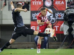 Το ματς ήταν ισορροπημένο και χωρίς φάσεις και ουσιαστικά στην πρώτη ευκαιρία που τους δόθηκε, οι «ερυθρόλευκοι» κατάφεραν να ανοίξουν το σκορ, όταν στο 19’ όταν ο Φορτούνης εκτέλεσε με υποδειγματικό τρόπο το φάουλ και έστειλε την μπάλα στα δίχτυα του Χίτον.