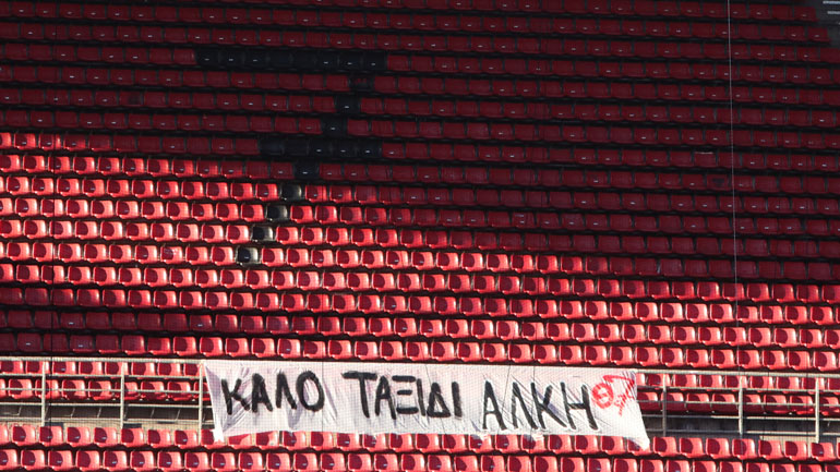 Άξιο αναφοράς επίσης είναι το γεγονός ότι υπάρχει στις εξέδρες και πανό για τον αδικοχαμένο φίλαθλο του Άρη, ο οποίος δολοφονήθηκε προ ημερών από χούλιγκανς στην περιοχή Χαριλάου, στη Θεσσαλονίκη, το οποίο έγραφε: «Καλό ταξίδι Άλκη».