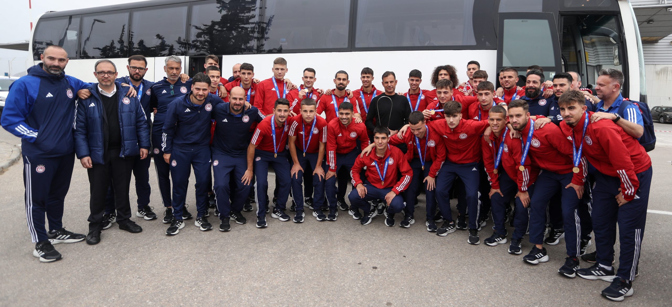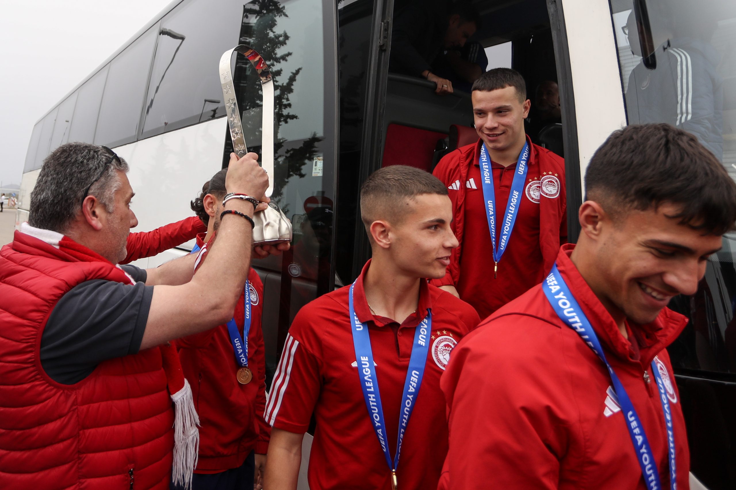 Την αποθέωση γνώρισε στο «Ελευθέριος Βενιζέλος» κατά την άφιξή της η ομάδα Νέων του Ολυμπιακού (Κ19), που σημείωσε τη μεγαλύτερη επιτυχία στην Ιστορία του ελληνικού ποδοσφαίρου, σε επίπεδο συλλόγων.