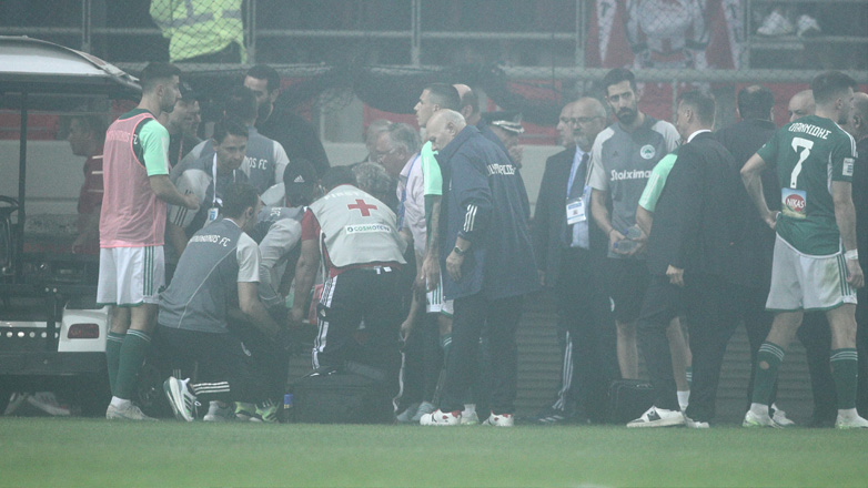 «Κροτίδα πέφτει στους ποδοσφαιριστές της ομάδας μας που προθερμαίνονται. Ο Χουάνκαρ βρίσκεται στο έδαφος τραυματισμένος. Διακοπή στον αγώνα. Η ομάδα μας αποσύρεται στα αποδυτήρια», αναφέρει ο Παναθηναϊκός στο twitter.
