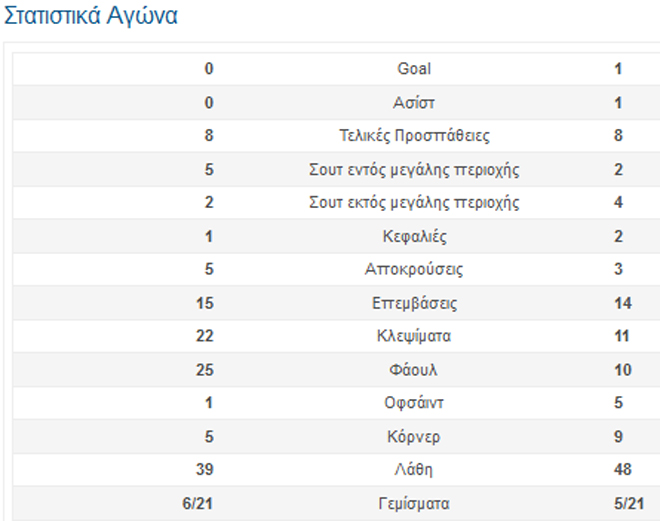 15′ Πρώτη καλή στιγμή στο παιχνίδι. Σέντραρε ο Σαλίνο, κεφαλιά από τον Μήτρογλου. Σε κόρνερ απομάκρυνε ο Καπίνο.