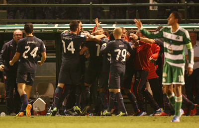 Το 0-0 φαίνονταν πως δε θα αλλάξει, όμως ο Μήτρογλου στο 90’ έκανε τη διαφορά. Από ασίστ του Φουστέρ και ολιγωρία της πράσινης άμυνας ο Μήτρογλου πλάσαρε τον Καπίνο και διαμόρφωσε το τελικό 1-0.