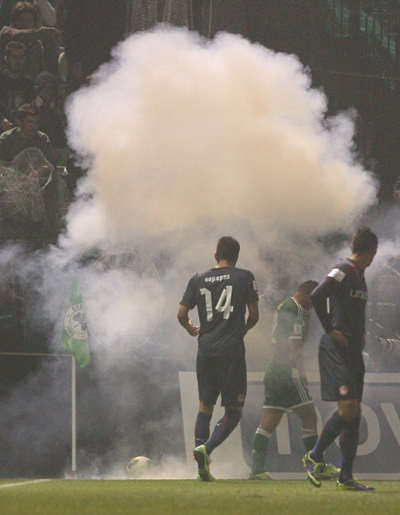 59′ Νέα διακοπή στον αγώνα. Ο Χολέμπας δεν μπορεί να εκτελέσει το κόρνερ. Τραυματίστηκε ο Πράνιτς, ο οποίος πήγε να μαζέψει ένα δυναμιτάκι το οποίο έσκασε μπροστά του!