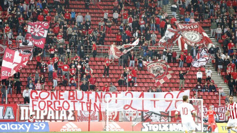 Έτσι στο σημερινό ματς των Πειραιωτών με την Κέρκυρα φίλαθλοι των γηπεδούχων ανήρτησαν στο «Καραϊσκάκη» πανό το οποίο περιείχε το μήνυμα «Gone but not forgotten» («Έφυγαν αλλά δεν ξεχάστηκαν»), με τον αριθμό 96 για τους φιλάθλους που έχασαν τη ζωή τους στο Χίλσμπορο, καθώς και το 21 για τα θύματα του Σταδίου Καραϊσκάκης στο παιχνίδι με την ΑΕΚ.