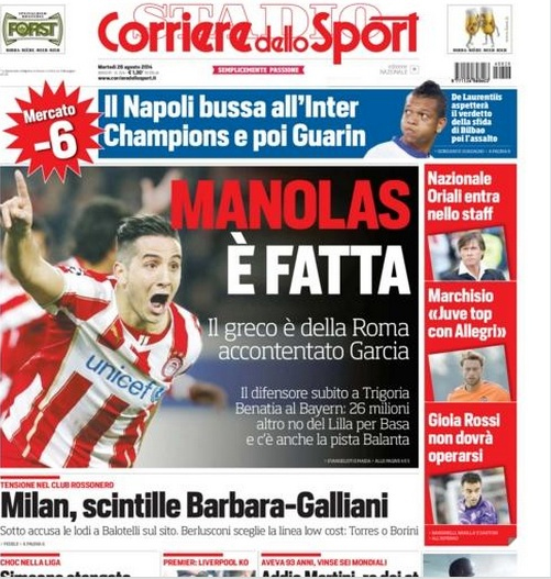 Άξιο αναφοράς είναι ότι η μεταγραφή είναι πρωτοσέλιδο στην «Corriere dello Sport».