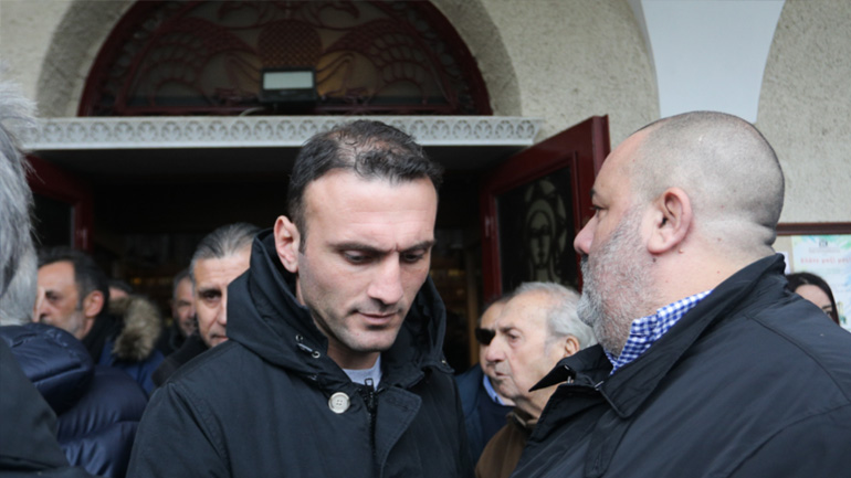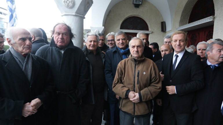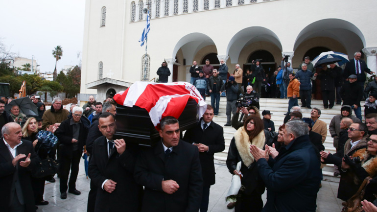 Η νεκρώσιμος ακολουθία τελέστηκε στον Ιερό Ναό Μεταμόρφωσης του Σωτήρος. Tο φέρετρο του θρυλικού άσου της δεκαετίας του ΄50 ήταν τυλιγμένο με τη σημαία του Ολυμπιακού.