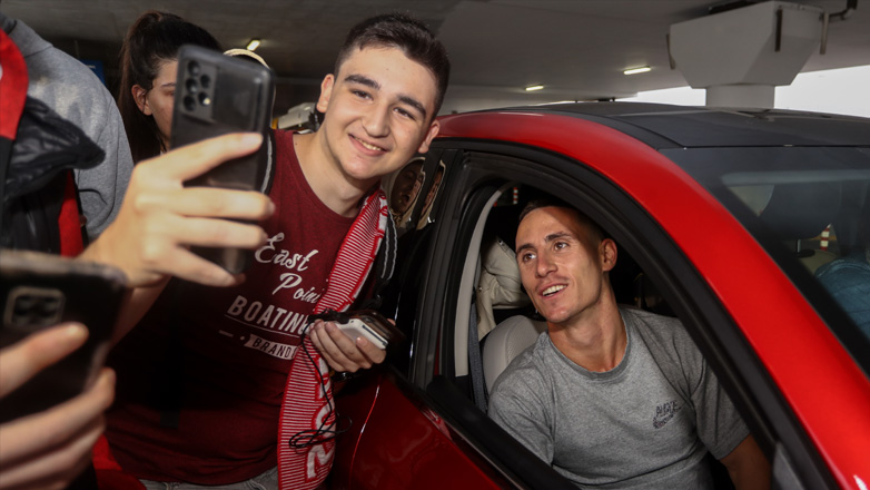Ο βραχύσωμος εξτρέμ έφτασε στην Αθήνα νωρίς το πρωί και γνώρισε την αποθέωση από φίλους του Ολυμπιακού που βρέθηκαν στο αεροδρόμιο. Στις δηλώσεις του δεν έκρυψε τη χαρά του για την επιστροφή του στην ομάδα του Πειραιά: