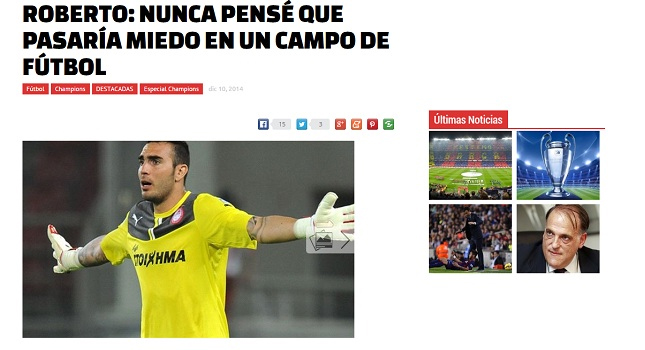 Σε ισπανική εκπομπή μίλησε ο Ρομπέρτο, με αφορμή τον θάνατο ενός οπαδού της Ντεπορτίβο, στα επεισόδια που σημειώθηκαν έξω από το γήπεδο της Ατλέτικο, κάνοντας αναφορικά στο περυσινό ματς Κυπέλλου ανάμεσα στον Ολυμπιακό και τον ΠΑΟΚ.