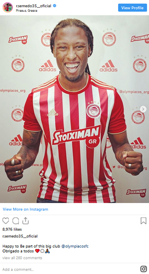 Ο Πορτογάλος αμυντικός, λίγες ώρες μετά την ολοκλήρωση της μετακίνησής του στους Πειραιώτες, ανέβασε μια φωτογραφία με τη φανέλα των «ερυθρολεύκων» στο προφίλ του στο instagram, σχολιάζοντας: «Χαρούμενος που είμαι μέλος μιας τόσο μεγάλης ομάδας».