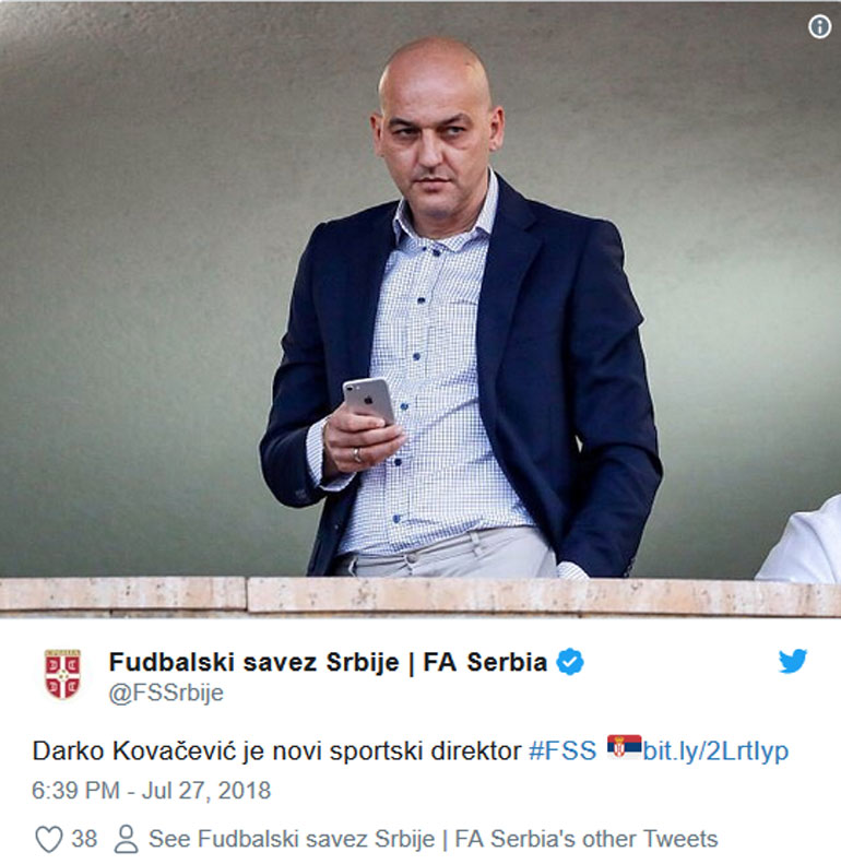 Τη θέση του τεχνικού διευθυντή της Εθνικής Σερβίας ανέλαβε ο Ντάρκο Κοβάσεβιτς, όπως ανακοίνωσε κι επίσημα την Παρασκευή η ποδοσφαιρική ομοσπονδία της χώρας.