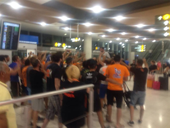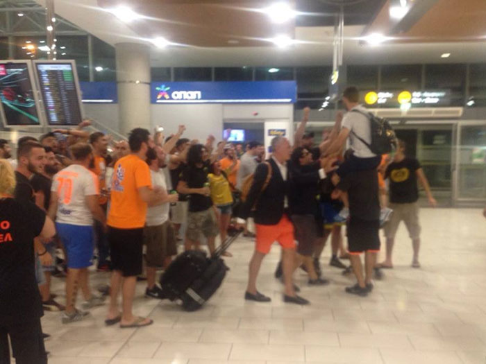 Φίλαθλοι της κυπριακής ομάδας, παρά το προχωρημένο της ώρας, πήγαν στο αεροδρόμιο για να τον αποθεώσουν και, μόλις τον είδαν να μπαίνει στην αίθουσα των αφίξεων, τον σήκωσαν στα χέρια!