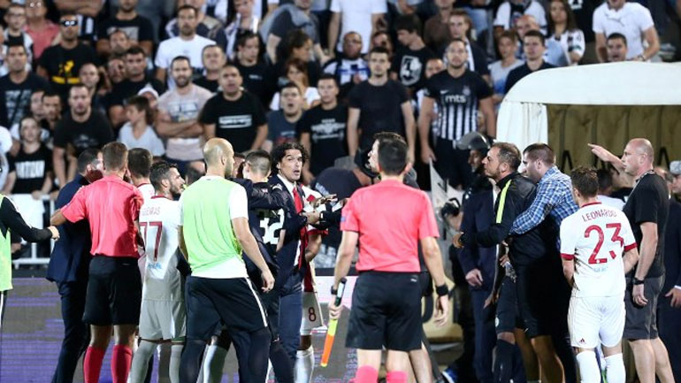 Άναψαν τα… αίματα από το πουθενά στον αγώνα του Ολυμπιακού με την Παρτιζάν, για τον τρίτο προκριματικό γύρο του Τσάμπιονς Λιγκ.