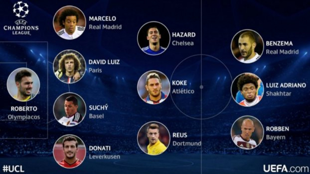 Οι άλλοι 10 παίκτες που συνθέτουν την καλύτερη 11άδα της αγωνιστικής είναι οι: Ντονάτι, Σουσί, Λουίζ, Μαρσέλο, Ρόις, Κόκε, Αζάρ, Ρόμπεν, Αντριάνο και Μπενζεμά.