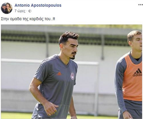 Με αφορμή την πρώτη προπόνηση του Λάζαρου Χριστοδουλόπουλου με τη φανέλα του Ολυμπιακού, ο μάνατζέρ του έμπειρου ποδοσφαιριστή ανέβασε φωτογραφία του διεθνούς άσου από το Ζέεφελντ κάνοντας το εξής σχόλιο: «στην ομάδα της καρδιάς του».