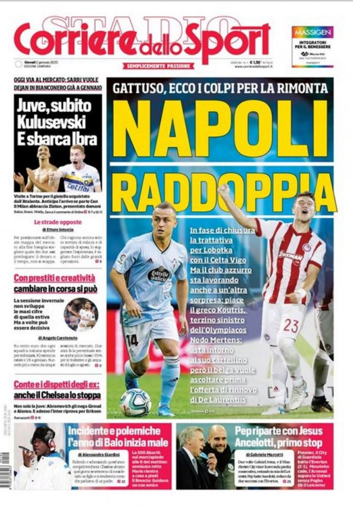 Στο πρωτοσέλιδο της ιταλικής αθλητικής εφημερίδας «Corriere Dello Sport» (στην έκδοση της Καμπανίας) δεσπόζει η είδηση του ενδιαφέροντος της Νάπολι για τον Λεονάρντο Κούτρη, με το ρεπορτάζ της γνωστής ιταλικής εφημερίδας να αναφέρει ότι ο παίκτης του Ολυμπιακού είναι κοντά στη μετακίνησή του στους «παρτενοπέι».