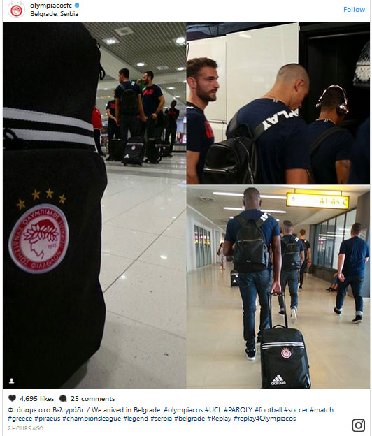 Στο Βελιγράδι αφίχθη το μεσημέρι της Δευτέρας ο Ολυμπιακός εν όψει του πρώτου αγώνα του με την Παρτιζάν για τον τρίτο προκριματικό γύρο του Τσάμπιονς Λιγκ.