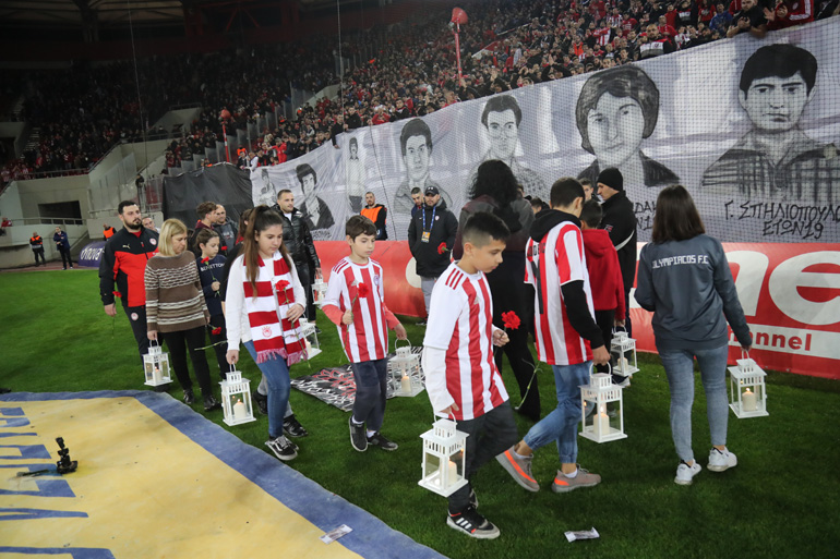 Πριν τη σέντρα στο ματς του Ολυμπιακού με την Ξάνθη στο «Γ. Καραϊσκάκης» για την 22η αγωνιστική της Super League προβλήθηκε video στα μάτριξ του γηπέδου στη μνήμη των θυμάτων της τραγωδίας της Θύρας 7.