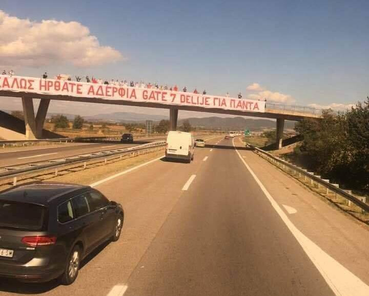 Πιο συγκεκριμένα, σε μία γέφυρα οι οπαδοί των Σέρβων, οι οποίοι ως γνωστόν έχουν αδελφικές σχέσεις με αυτούς των Πειραιωτών, είχαν απλώσει ένα πανό που έγραφε: «Καλώς ήρθατε αδέλφια».