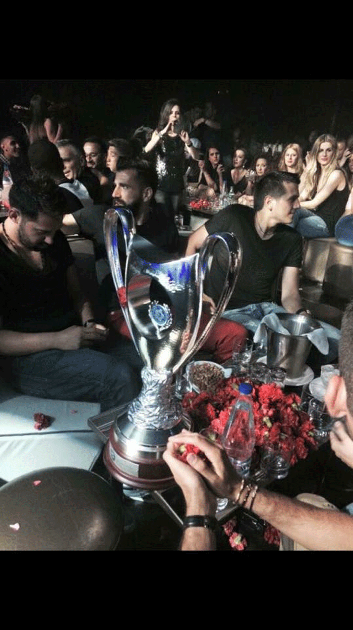 Δίχως καμία επίσημη αγωνιστική υποχρέωση πλέον, οι παίκτες του Ολυμπιακού είχαν την ευκαιρία να ξεσκάσουν λίγο παραπάνω. Έτσι λοιπόν αρκετοί από αυτούς έδωσαν ραντεβού σε κέντρο νυχτερινής διασκέδασης στην παραλιακή, προκειμένου να γιορτάσουν περαιτέρω την επιτυχία της κατάκτησης του νταμπλ.