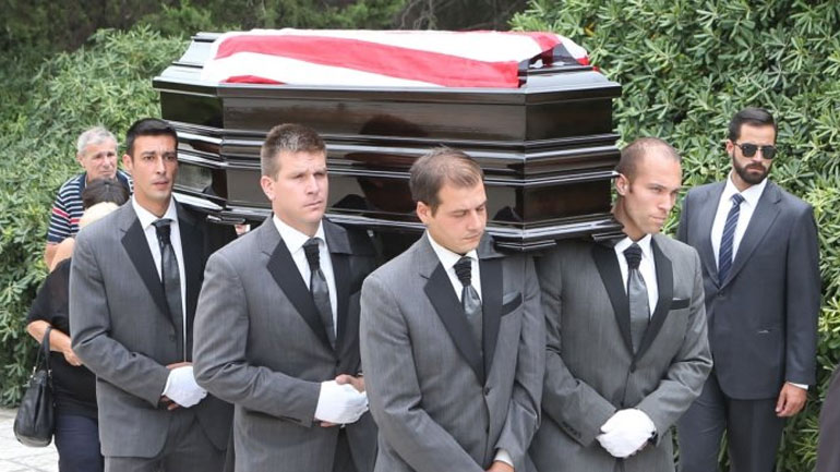 Η κηδεία του πραγματοποιήθηκε στο κοιμητήριο του Ζωγράφου με μία σημαία του Ολυμπιακού να σκεπάζει το φέρετρο του εκλιπόντα, ο οποίος έγραψε τη δική του ιστορία στο ελληνικό ποδόσφαιρο, αγωνιζόμενος με την ερυθρόλευκη φανέλα.