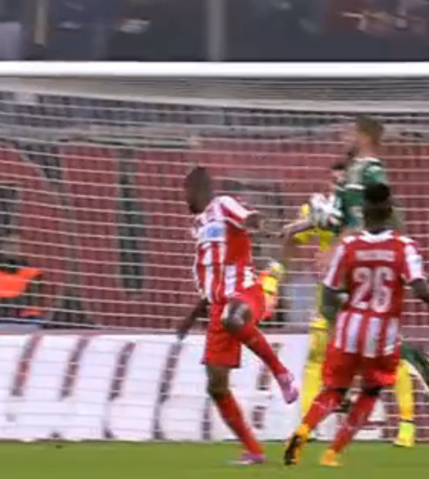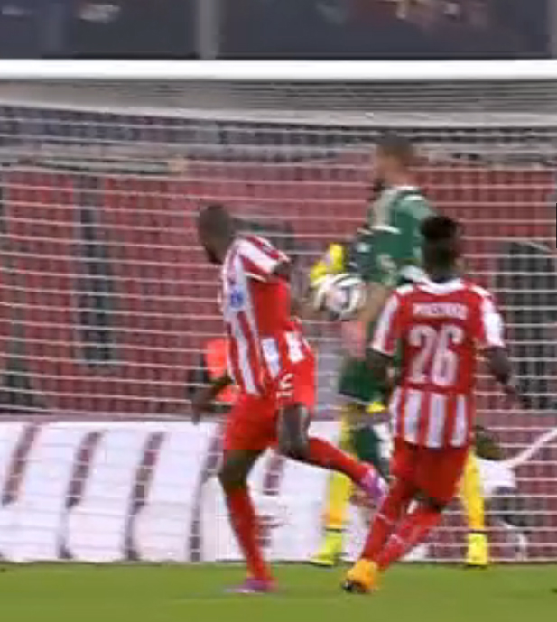 Ο Πέτριτς στην προσπάθεια του να κοντρολάρει τη μπάλα την βρήκε στα πλευρά του και όπως φάνηκε και με… γυμνό μάτι δεν χρησιμοποίησε επ’ ουδενί το χέρι του.