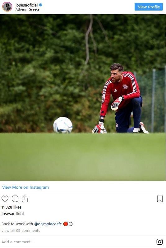 «Πίσω στη δουλειά με τον Ολυμπιακό» ανέφερε σε ποστάρισμά του στον προσωπικό του λογαριασμό στο Instagram ο 26χρονος τερματοφύλακας.
