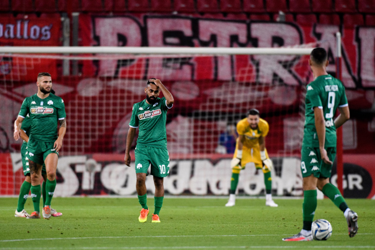Από την άλλη πλευρά ο Παναθηναϊκός δεν ήταν κακός, είχε τις ευκαιρίες του ακόμα και να προηγηθεί (κεφαλιά από τα τρία μέτρα του Κουρμπέλη στο 3΄-άουτ) ή και να ισοφαρίσει (ο Μπα απομάκρυνε με κεφαλιά στη γραμμή τη «λόμπα» του Χατζηγιοβάνη στο 18΄), όμως από τη στιγμή που οι γηπεδούχοι έκαναν γκολ τις δύο πρώτες ευκαιρίες τους, ήταν ξεκάθαρο πως οι πιθανότητες των «πράσινων» για θετικό αποτέλεσμα έγιναν απειροελάχιστες.