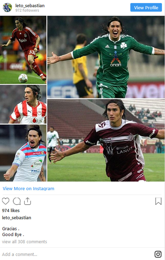 Την απόφασή του να κρεμάσει τα παπούτσια του σε ηλικία 32 ετών πήρε ο Σεμπάστιαν Λέτο, ο οποίος ως γνωστόν αγωνίστηκε στο ελληνικό πρωτάθλημα αρχικά με τον Ολυμπιακό και εν συνεχεία με τον Παναθηναϊκό.