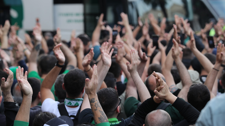 Αξίζει να σημειωθεί ότι υπήρχαν κάγκελα γύρω από το πούλμαν του «τριφυλλιού» για λόγους ασφαλείας.