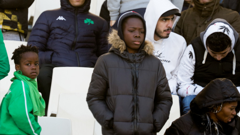 Μάλιστα 22 προσφυγόπουλα συνόδευσαν στον αγωνιστικό χώρο τους παίκτες των δύο ομάδων, κρατώντας πανό που έγραφε: «Είμαστε όλοι ξεχωριστοί, είμαστε όλοι ίσοι».