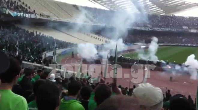 Φωτοβολίδες από τους φιλάθλους του Παναθηναϊκού προς τους αστυνομικούς