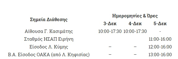 Η διάθεσή τους στα εκδοτήρια θα γίνεται ως εξής: