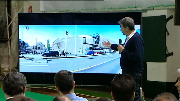 Ο πρόεδρος της ΠΑΕ τόνισε την ανάγκη εκσυγχρονισμού της Λεωφόρου και ζήτησε τη συμβολή των φίλων της ομάδας. Στην τοποθέτησή του ανέφερε: «Ευχαριστώ που ήρθατε για να σας δείξουμε την καινούργια Λεωφόρο και να λανσάρουμε την καμπάνια για την κατασκευή της. Διάβασα διάφορα πράγματα κι αυτό που μου έκανε μεγαλύτερη εντύπωση είναι πως επισκευάστηκε μετά την Κατοχή, το 1948, με πρωτοβουλία του Απόστολου Νικολαΐδη και με έναν μεγάλο έρανο των φίλων του Παναθηναϊκού. Τότε μπήκαν και οι πρώτοι προβολείς».