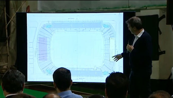 «Όλοι μας θα βάλουμε πλάτη. Τα έργα μας θα ξεκινήσουν αμέσως μετά τα πλέι οφ. Θα κατασκευάσουμε τις νέες σουίτες. Έχουμε ήδη μαζέψει πάνω από 1 εκατ. ευρώ από φίλους της ομάδας. Στόχος είναι να μαζέψουμε όσα περισσότερα χρήματα μπορούμε. Έχουμε ήδη υποβάλει τα χαρτιά για τις άδειες. Θα φτιάξουμε τη δεύτερη εξέδρα για 2.300 οπαδούς και δύο κτήρια στα κόρνερ, αλλά και το μισό περίβλημα στο εξωτερικό» πρόσθεσε.