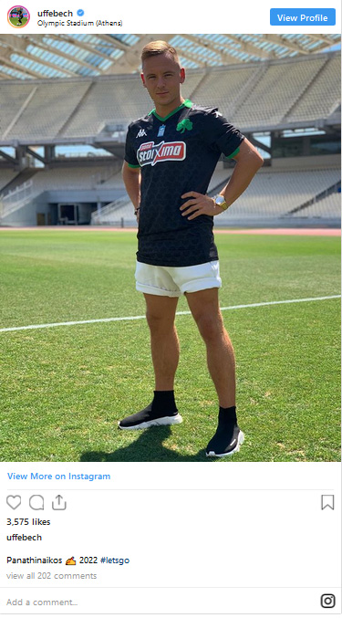 Μία ημέρα μετά την ολοκλήρωση της μεταγραφής του στους «πράσινους» ο 26χρονος Δανός μεσοεπιθετικός έκανε την πρώτη του ανάρτηση ως ποδοσφαιριστής της ελληνικής ομάδας, γράφοντας στο instagram: «Παναθηναϊκός, 2022. Πάμε!».