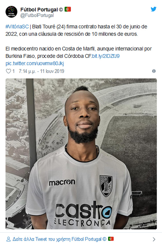 Ο Ιβοριανός μέσος υπέγραψε τριετές συμβόλαιο με την ομάδα της Πορτογαλίας, η οποία γνωστοποίησε ότι έβαλε ρήτρα αποδέσμευσης στον ποδοσφαιριστή ύψους 10 εκατ. ευρώ.