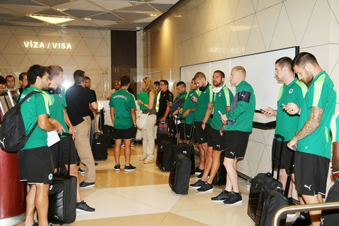 H αποστολή των πράσινων πέταξε στις 8:00 το πρωί της Τετάρτης (19/8) από το «Ελευθέριος Βενιζέλος» για το Μπακού και λίγες ώρες αργότερα έφτασε στον προορισμό της χωρίς κανένα πρόβλημα, για την αναμέτρηση της Πέμπτης (20/8, 19.00) με την Καμπάλα. Το κλίμα στις τάξεις των πράσινων είναι εξαιρετικό με τον Γιάννη Αναστασίου να ζητά τη νίκη στο πρώτο ματς.