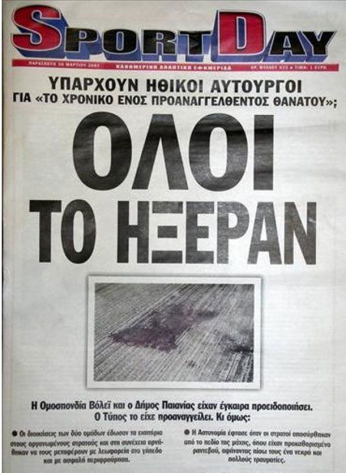 Έχουν περάσει εννέα χρόνια και δεν έχει αλλάξει το παραμικρό. Η βία ζει και βασιλεύει. Τα επεισόδια εντός και εκτός γηπέδων συνεχίζονται, όπως και τα ραντεβού θανάτου μεταξύ οπαδών. Βέβαια, εφέτος (από θαύμα) δεν έχει υπάρξει νεκρός. Και αυτό αποτελεί πρόοδο, όπως δήλωσε στις αρχές του μήνα ο Σταύρος Κοντονής, λίγες μέρες μετά την απόφασή του για ματαίωση της διοργάνωσης του Κυπέλλου Ελλάδας.